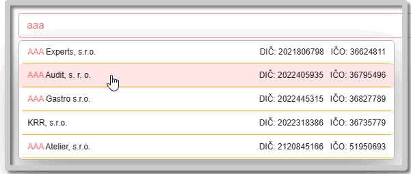 - Príklad #1 - jednoduchý - vyhľadanie firmy/subjektu