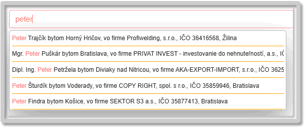 - Príklad #2 - pokročilý - vyhľadanie firmy/subjektu